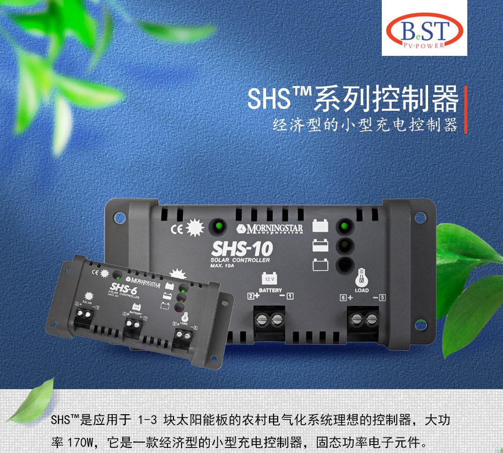 SHS?是應(yīng)用于1-3塊太陽能板的農(nóng)村電氣化系統(tǒng)理想的控制器,大功率170W,它是一款經(jīng)濟型的小型充電控制器,固態(tài)功率電子元件。
