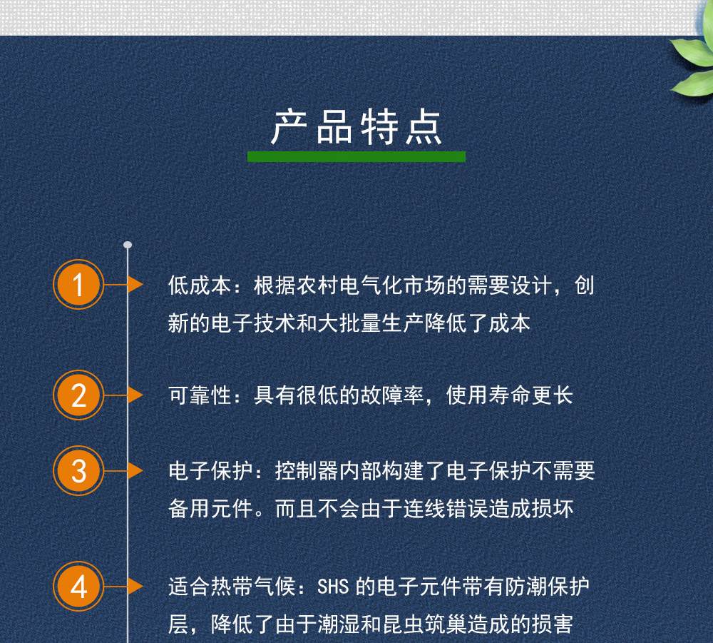低成本:根據(jù)農(nóng)村電氣化市場的需要設(shè)計,創(chuàng)新的電子技術(shù)和大批量生產(chǎn)降低了成本;